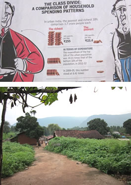 2013年9月半ば、インドの新聞に国内都市部の貧富の格差がイラストつきで記事になりました。(右上の写真)