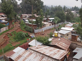 アジスアベバで一番高いウントト山のふもとの村の景色