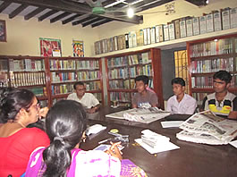 今の若者世代を憂い、西洋からの教育制度の限界を感じ始めたショヒドル氏は、そこで留まってはいなかった。ビジョナリーの視点で、実践家としての活動を始めていた。郡役所の周囲で多くのカレッジや高校があり、学生が集まりやすい地区の商店街で部屋を借りて、6年ほど前からコミュニティ図書館を始めたのだ。若者たちが集まって本や雑誌、様々な新聞から情報を得ると同時に、顔と顔を合わせて社会のためになる活動を議論し、考えてほしいと願って「場」を提供したものだ。昨年のテロ事件以降、ショヒドル氏は毎夕、その場に出かけるようになった。若者と顔を合わせて彼らが考えていることを聞き、これから彼らが何を考えていったらよいか、様々な角度から提案しているのだ。実際に、身近な地域社会の課題を見つけ、彼らは主体的に献血運動に参加したり、親が社会的名誉のために強制する児童結婚に気づくとそれを止めてもらうように担当の役場に連絡していた。