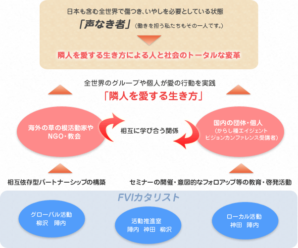 種はどんなに小さくても、将来、必ず芽を出し、大きな木に成長し、花を咲かせ、 実を結ぶことになります。このような小さな愛の種を蒔く「からし種エイジェント」 が日本に増え広がることによって砂漠が森に変革され「共に喜ぶ社会」は実現される と信じるからです。
